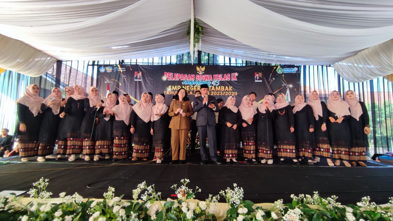 Ia menyampaikan bahwa sebanyak 252 siswa, terdiri dari 126 siswa putra dan 126 siswa putri, akan dilepas pada tahun ini. Ia juga mengumumkan bahwa SMPN 1 Tambak sedang menuju digitalisasi sekolah, sehingga pengumuman kelulusan tidak akan melalui kertas, melainkan melalui tautan web https://lulus.spensata.sch.id yang dapat diakses oleh semua siswa maupun wali siswa. Pengumuman kelulusan akan dipandu oleh Bapak Akhmad Faozi, S.Pd.Si.